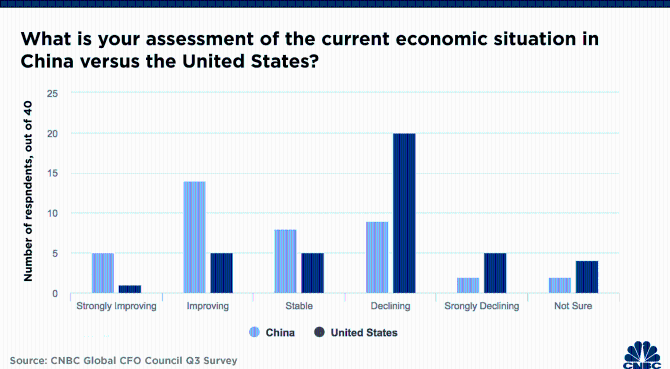 △全球首席財(cái)務(wù)官對(duì)當(dāng)前中美經(jīng)濟(jì)的評(píng)價(jià)(圖片來(lái)源:CNBC)