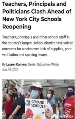 △《美國(guó)新聞與世界報(bào)道》報(bào)道,紐約眾多學(xué)校的校長(zhǎng)和老師舉行抗議,要求“安全開(kāi)學(xué)”。
