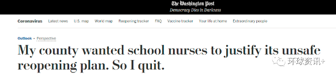 △ 《華盛頓郵報(bào)》刊登護(hù)士自述:“我所在縣的學(xué)校要求護(hù)士為不安全的重開(kāi)計(jì)劃辯護(hù),我不干了。”