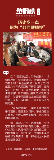 那些背著背包以雙腳征服14座海拔5000多米險(xiǎn)峻雪山的中國(guó)人民解放軍將士,用軍魂熔鑄“老西藏精神”;寫出“冰山愈冷情愈熱,耿耿忠心照雪山”詩(shī)句的援藏干部孔繁森,用生命踐行“老西藏精神”;滔滔江河上搭金橋、重重險(xiǎn)山間辟大道,迢迢天路無言訴說著“老西藏精神”;“玉麥每一個(gè)人都是祖國(guó)的坐標(biāo)”,在西藏長(zhǎng)達(dá)4000多公里的邊境線上,數(shù)不清的黨員干部默默踐行傳承著“老西藏精神”……
