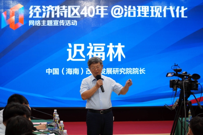 圖為中國(海南)改革發(fā)展研究院院長遲福林發(fā)表主旨演講