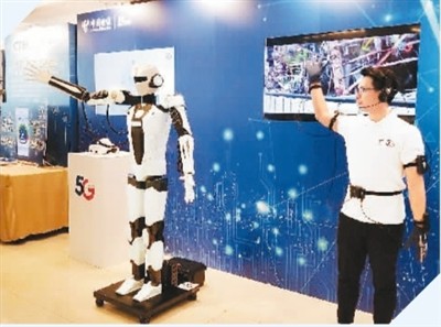 在澳門展出的一款“5G+動(dòng)作傳感仿生機(jī)械人”。 |