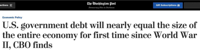 △《華盛頓郵報(bào)》:二戰(zhàn)以來(lái),美國(guó)債務(wù)將首次超過(guò)其經(jīng)濟(jì)體量
