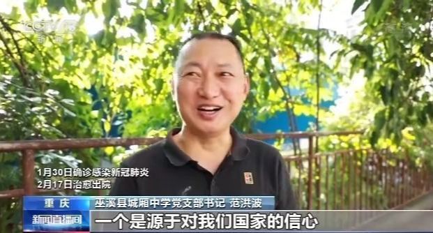 重慶市巫溪縣城廂中學(xué)黨支部書記 范洪波:治療的時候我當(dāng)然有信心,一個是源于對我們國家的信心,對政府的信心,第二個是源自對我的親人啊,朋友啊,他們給我打氣,第三個是我個人吧,我的心態(tài)很好,所以我很有信心。