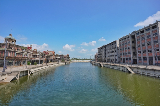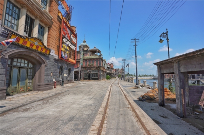 電影《八佰》的拍攝基地選址耗時(shí)3年時(shí)間,最終于蘇州陽澄湖半島旅游度假區(qū)落地,華誼兄弟的另一個(gè)電影實(shí)景項(xiàng)目華誼兄弟電影世界(蘇州)也坐落于此。歷時(shí)1年半,這座占地 200 畝、擁有 68 棟建筑并深挖 200 米長蘇州河,1:1真實(shí)還原四行倉庫和蘇州河北岸的實(shí)景拍攝基地搭建完成,成為電影拍攝的駐地。