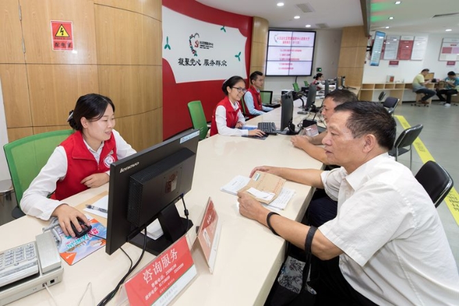 圖為深圳市龍華區(qū)民治街道北站社區(qū)黨群服務中心工作人員熱情接待前來辦事的社區(qū)群眾。深圳特區(qū)報記者 周紅聲/攝