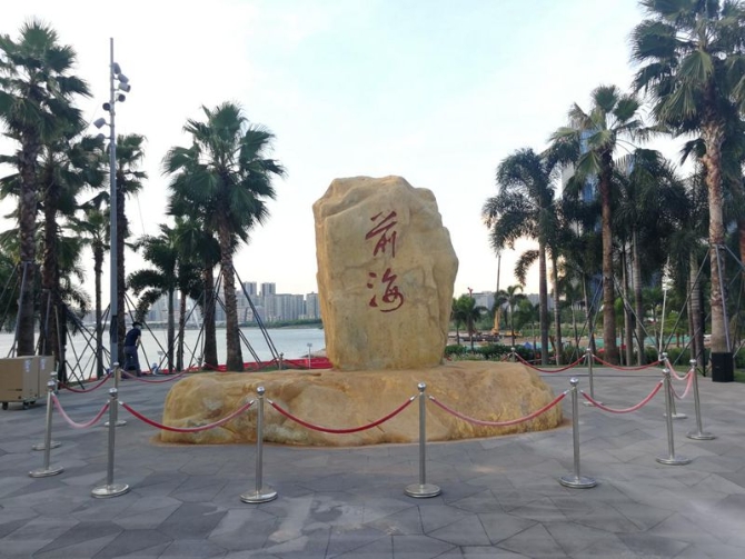 圖為前海石。2018年10月24日,習近平總書記在深圳考察調研。在前海石前,總書記同前海建設者和見證者代表同話滄桑巨變。徐輝冠/攝
