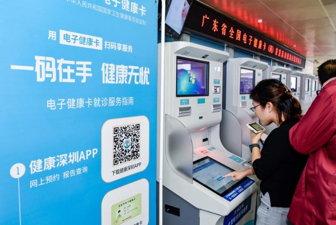 圖為深圳市民自助領取電子健康卡(碼)。供圖:深圳衛(wèi)生健康信息協(xié)會