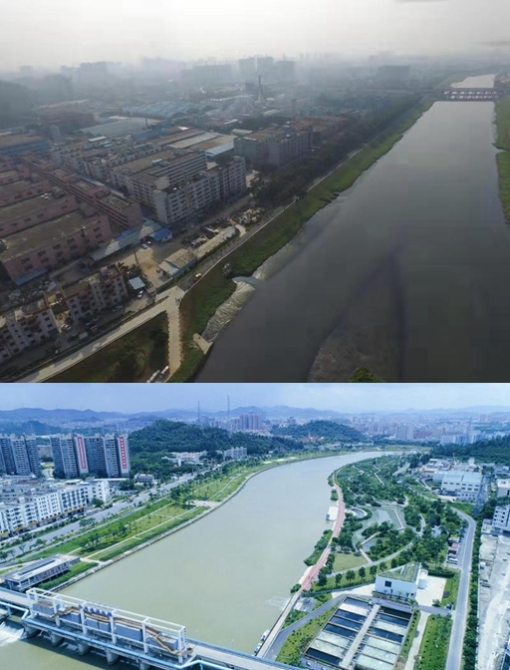 圖為茅洲河治理前后的對比。供圖:深圳市水務局