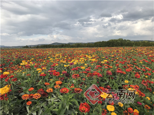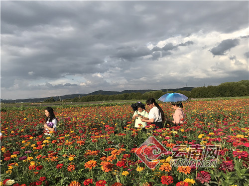 初秋時節(jié),昭通市魯?shù)榭h桃源鄉(xiāng)拖姑村“千畝花海”步入盛開期,每天游人如織。萬壽菊、百日菊、波斯菊等競相綻放,放眼望去,就像一個彩色的天堂。秋高氣爽,五彩斑斕的花朵和沁人心脾的花香吸引了不少游客前來賞花、拍照,還有的三五成群拍抖音,盡享秋季美麗的田園風光。
