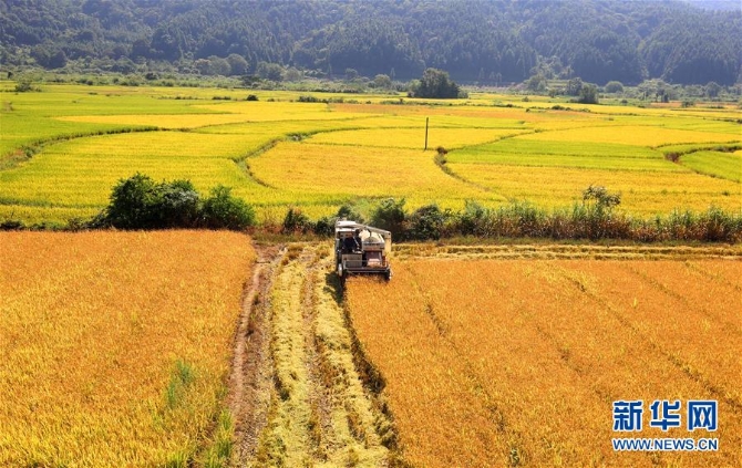 9月7日,江西省宜春市靖安縣水口鄉(xiāng)桃源村農(nóng)民駕駛農(nóng)機在收割晚稻。 當日是白露節(jié)氣,各地田間地頭一片農(nóng)忙景象。 新華社發(fā)(徐仲庭 攝)