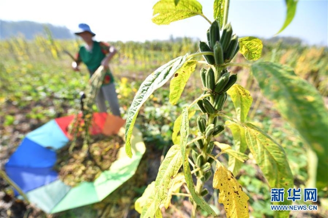 9月7日,安徽省阜陽市臨泉縣呂寨鎮(zhèn)楊莊村農(nóng)民在收獲芝麻。 當日是白露節(jié)氣,各地田間地頭一片農(nóng)忙景象。 新華社發(fā)(盧啟建 攝)
