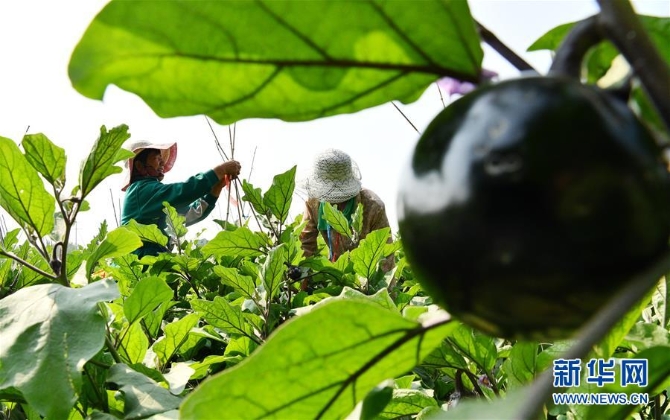 9月7日,河北省石家莊市欒城區(qū)欒城鎮(zhèn)南石碑村菜農(nóng)在茄子地里忙碌。 當日是白露節(jié)氣,各地田間地頭一片農(nóng)忙景象。 新華社發(fā)(李明發(fā) 攝)