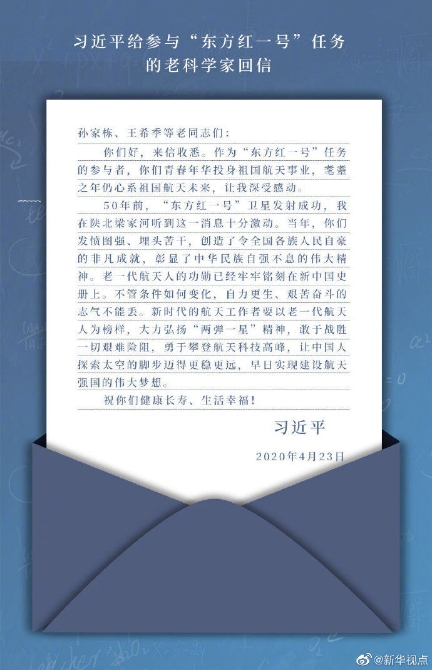 “敢于戰(zhàn)勝一切艱難險阻”——今年4月,習(xí)近平給參與“東方紅一號”任務(wù)的老科學(xué)家回信時這樣寫道。