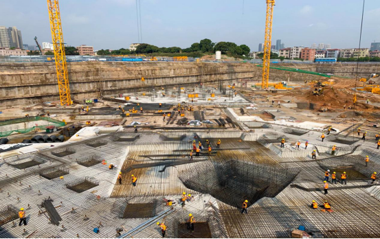 持續(xù)深化改革,國有企業(yè)基層活力不斷激發(fā),效率穩(wěn)步提升。圖為疫情期間,中建二局二公司東關珺府項目在搶趕工期。