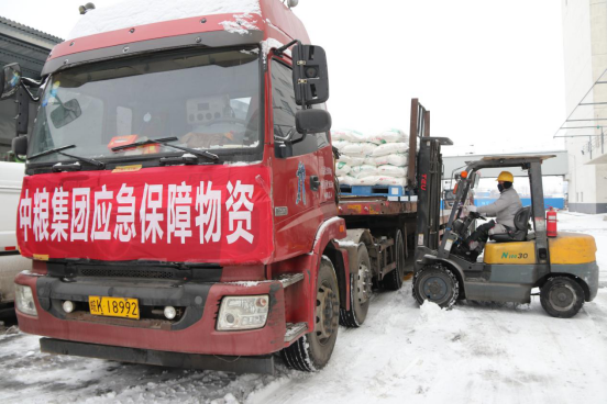 2月初,中糧集團員工冒雪搶運應急保障物資。