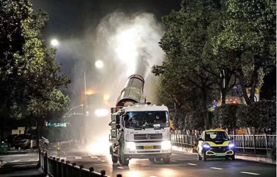 東風集團等駐鄂央企在自身疫情防控壓力巨大的情況下,第一時間積極投身戰(zhàn)疫一線。圖為東風消殺車。