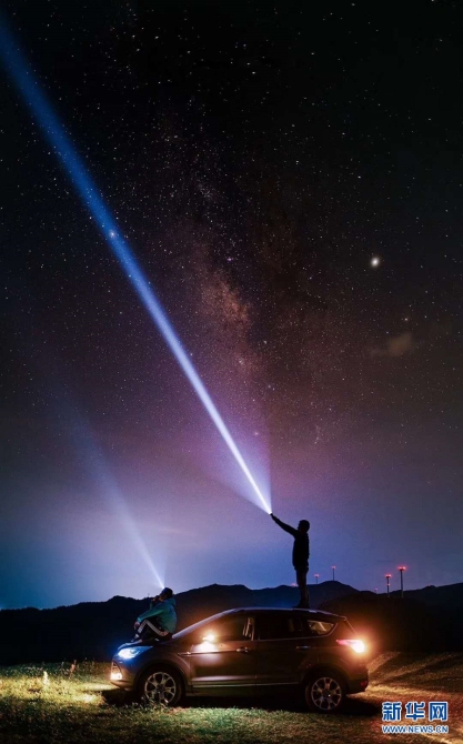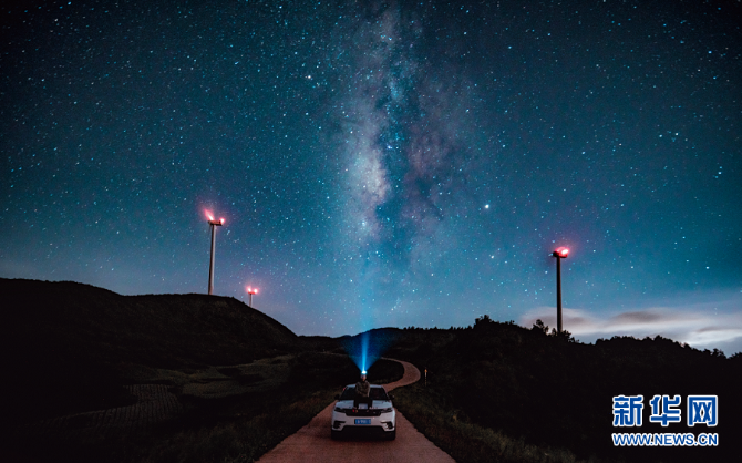 撫仙湖星空小鎮(zhèn)上空星光璀璨(攝于4月1日)。新華網(wǎng)發(fā)(供圖)