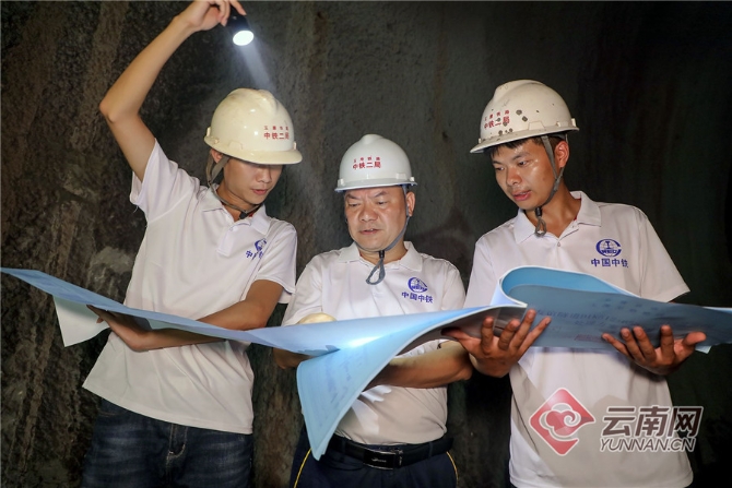 中鐵二局技術(shù)人員在隧道內(nèi)研究下一步施工方案。姚巍 攝