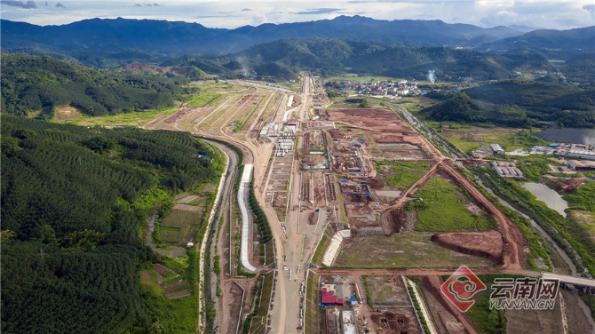 與友誼隧道相連的中老鐵路磨憨車站建設(shè)有序推進。陳暢 攝