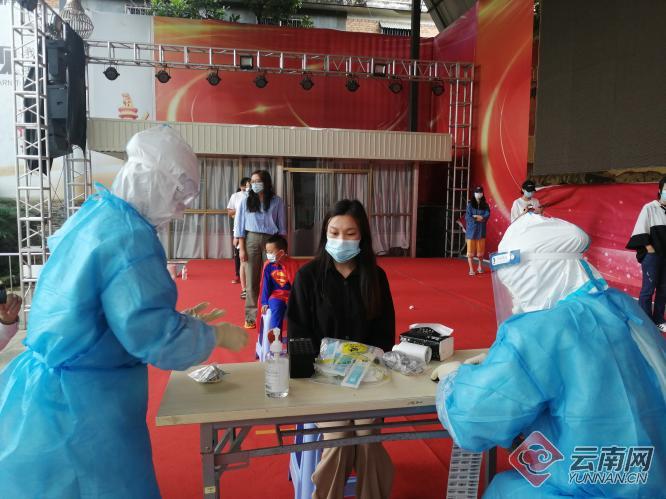 “為了防止人員聚集,我們把檢測現(xiàn)場人員控制在20至30人左右,全員檢測工作將在3天內完成。”瑞麗市疫情防控興安社區(qū)網(wǎng)格管理員王波介紹。