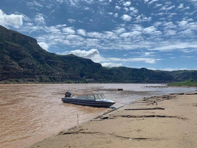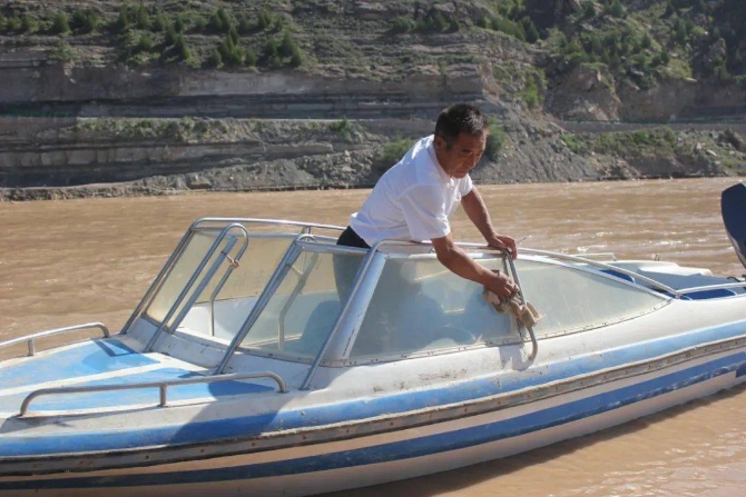 任鳳祥在快艇上(佳縣縣委宣傳部供圖)