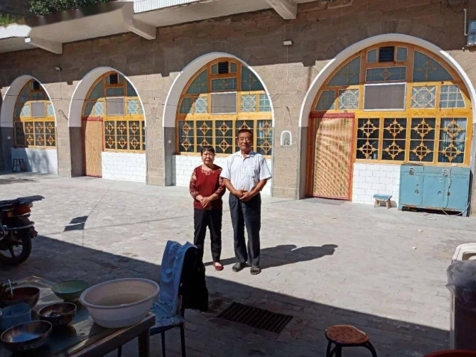 任鳳祥和妻子在自家四孔窯洞的小院里