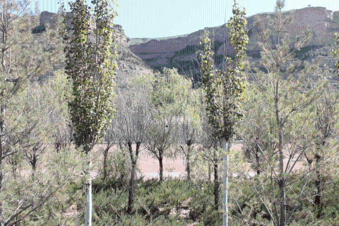 從濱河公園的樹林里望向黃河(佳縣縣委宣傳部供圖)