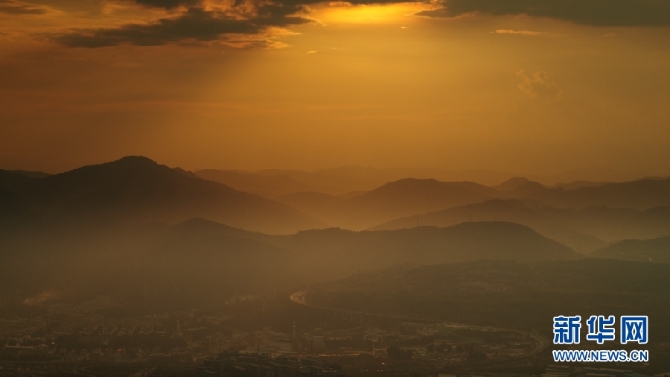 9月3日,夕陽(yáng)下的群山與山腳下的高速公路。(新華網(wǎng) 劉東 攝)
