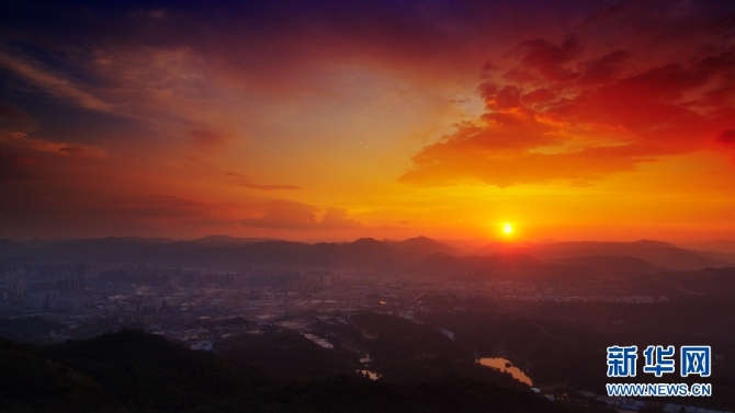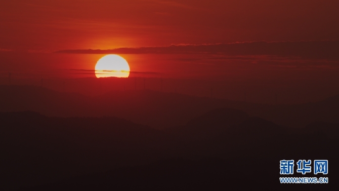 9月3日,已落入群山一角的太陽(yáng)。(新華網(wǎng) 劉東 攝)
