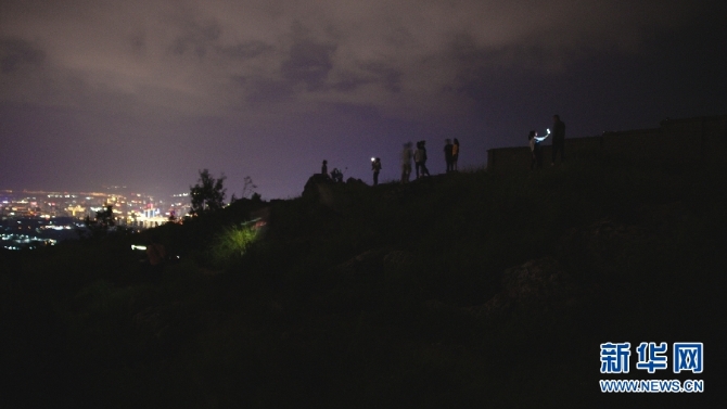 9月3日,深夜依舊在山頂打卡拍照的游客。(新華網(wǎng) 劉東 攝)