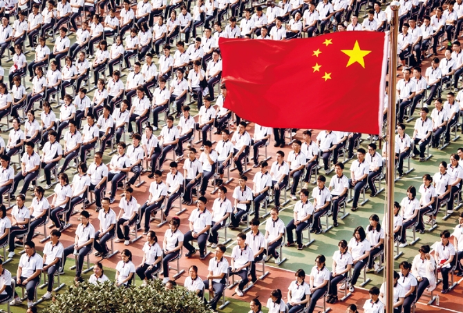 2020年9月1日,湖北省武漢市中小學(xué)、幼兒園全面開學(xué)。圖為當(dāng)日武漢中學(xué)舉行的開學(xué)典禮。 新華社記者 肖藝九/攝
