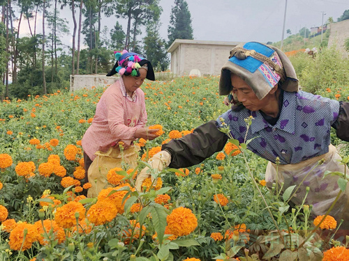 村民采摘萬壽菊