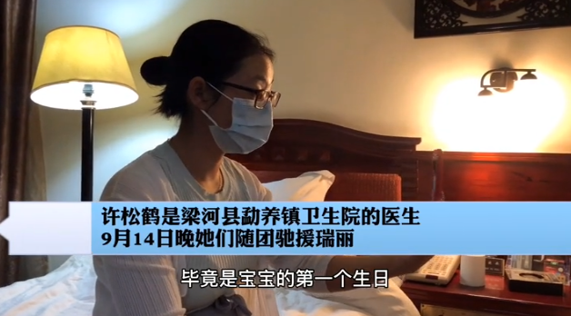 許松鶴是梁河縣勐養(yǎng)鎮(zhèn)衛(wèi)生院的一名的醫(yī)生,今天原本是女兒1歲的生日,但馳援瑞麗的她只能通過(guò)視頻祝孩子生日快樂(lè)。(掌上德宏 記者張仁韜 楊立 楊國(guó)平 李衛(wèi)昌)