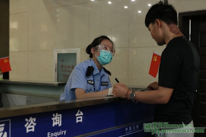 疫情防控期間,邊民群眾到出入境大廳咨詢最新出入境政策和法律法規(guī)的人員不少。