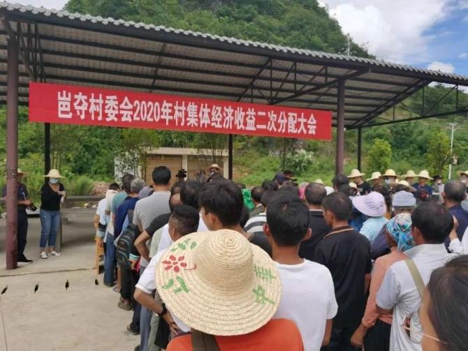 9月13日下午,記者團來到文山壯族苗族自治州廣南縣岜奪村的廣場,親眼見證了岜奪村的集體經(jīng)濟收益二次分配大會的舉行。