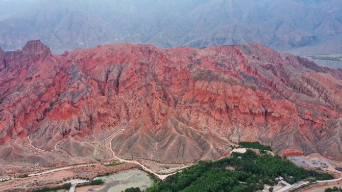 這是6月15日拍攝的位于青海省海南藏族自治州貴德縣境內的丹霞地貌(無人機照片)。新華社記者 吳剛 攝