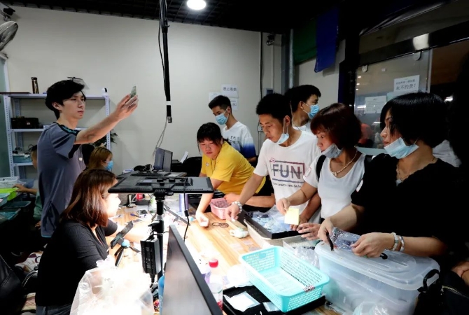 姐告玉城直播基地逐漸人聲鼎沸,數(shù)百個攤位同時“開工”(資料圖)。李秋明/攝