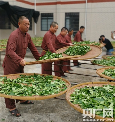 茶農(nóng)制作秋茶(央廣網(wǎng)記者張子亞攝)
