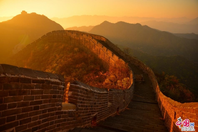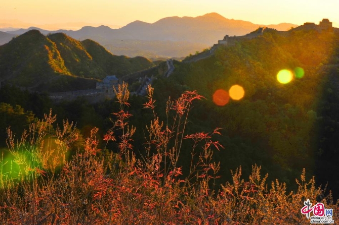 在金山嶺長(zhǎng)城,清晨的露珠,略帶寒意,讓人們感到長(zhǎng)城的莊嚴(yán);中午的暖陽(yáng),伴白云飄飛,讓人們感到其樂融融;傍晚的霞光 ,盡顯秋韻獨(dú)有,讓人們感到神圣與浪漫。此時(shí)游長(zhǎng)城、賞秋色會(huì)感覺長(zhǎng)城的雄偉與國(guó)人的自豪。