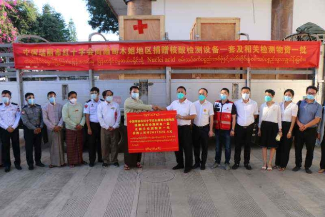 瑞麗市市長謝大鵬和木姐地區(qū)副行政長官吳歐嘎,雙方外事、紅十字會(huì)、衛(wèi)健、疾控等相關(guān)部門負(fù)責(zé)人參加捐贈(zèng)儀式。據(jù)了解,為使這批捐贈(zèng)物資能盡快有效地發(fā)揮作用,瑞麗市派出了由4名技術(shù)人員和檢測(cè)專家組成的援助隊(duì)伍,赴緬甸木姐協(xié)助安裝調(diào)試設(shè)備并對(duì)緬方人員進(jìn)行核酸檢測(cè)培訓(xùn)。