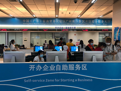 廣州南沙政務(wù)服務(wù)中心大廳內(nèi)開辦企業(yè)一窗通服務(wù)區(qū)。人民網(wǎng)邢鄭/攝