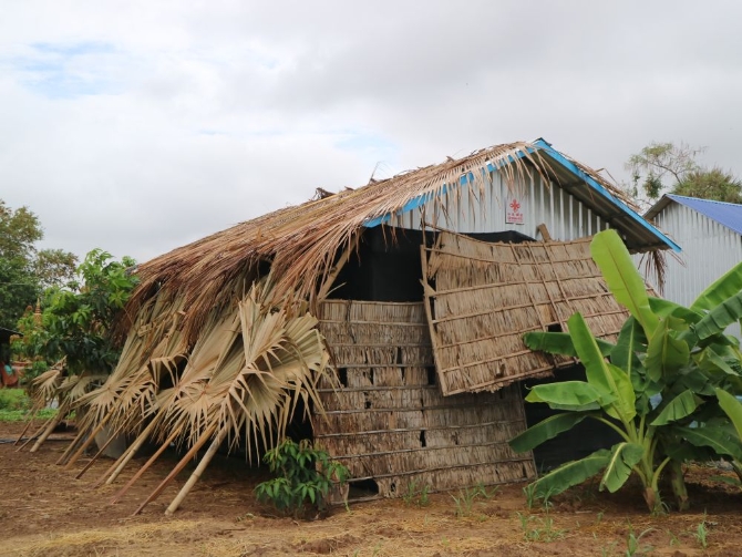 這是4月13日在柬埔寨干丹省莫穆坎普縣斯瓦安普鄉(xiāng)拍攝的一家農(nóng)戶的蘑菇棚。(新華社發(fā))
