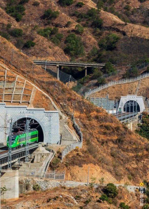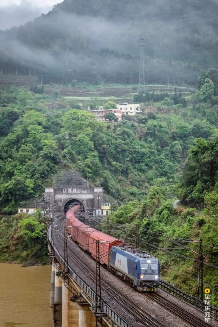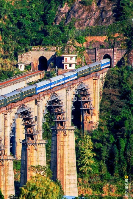 (棚洞是一種特殊的隧道,下圖為成昆鐵路沿線的棚洞,攝影師@張普超)