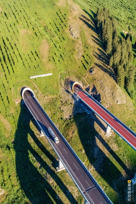 (請橫屏觀看,三座隧道組成的秦嶺隧道群,攝影師@魏煒)