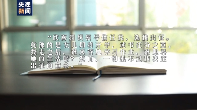 “欣喜組織領(lǐng)導(dǎo)信任我,選我出征。猶豫的是女兒即將開學(xué),讀書任務(wù)之重。我走之后,誰來管她學(xué)習(xí)作業(yè),誰照料她的生活呢?然而,一切抵不過我決定出征的意念。”??