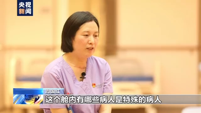 周國紅:我的工作內(nèi)容就是整個(gè)查400多個(gè)病人,誰缺什么了,要去補(bǔ)哪些東西了,這個(gè)艙內(nèi)有哪些病人是特殊的病人,我都要關(guān)注到他們。
