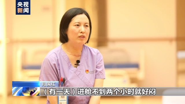 周國紅:就進(jìn)艙不到兩個(gè)小時(shí)就好悶,特別特別不舒服,我就走到那個(gè)醫(yī)生辦公室門口,我就沒坐到那個(gè)床上去,我抓著她(同事),抓著她前胸就躺下了。?