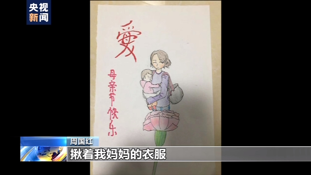 周國紅:她就說我小的時(shí)候,就是這樣揪著我媽媽的衣服,媽媽大包小包的抱著我,旁邊一朵康乃馨,她希望我健健康康的。?