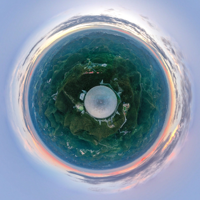 ↑2019年8月28日拍攝的“中國天眼”全景(檢修期間拍攝)。新華社記者 歐東衢 攝